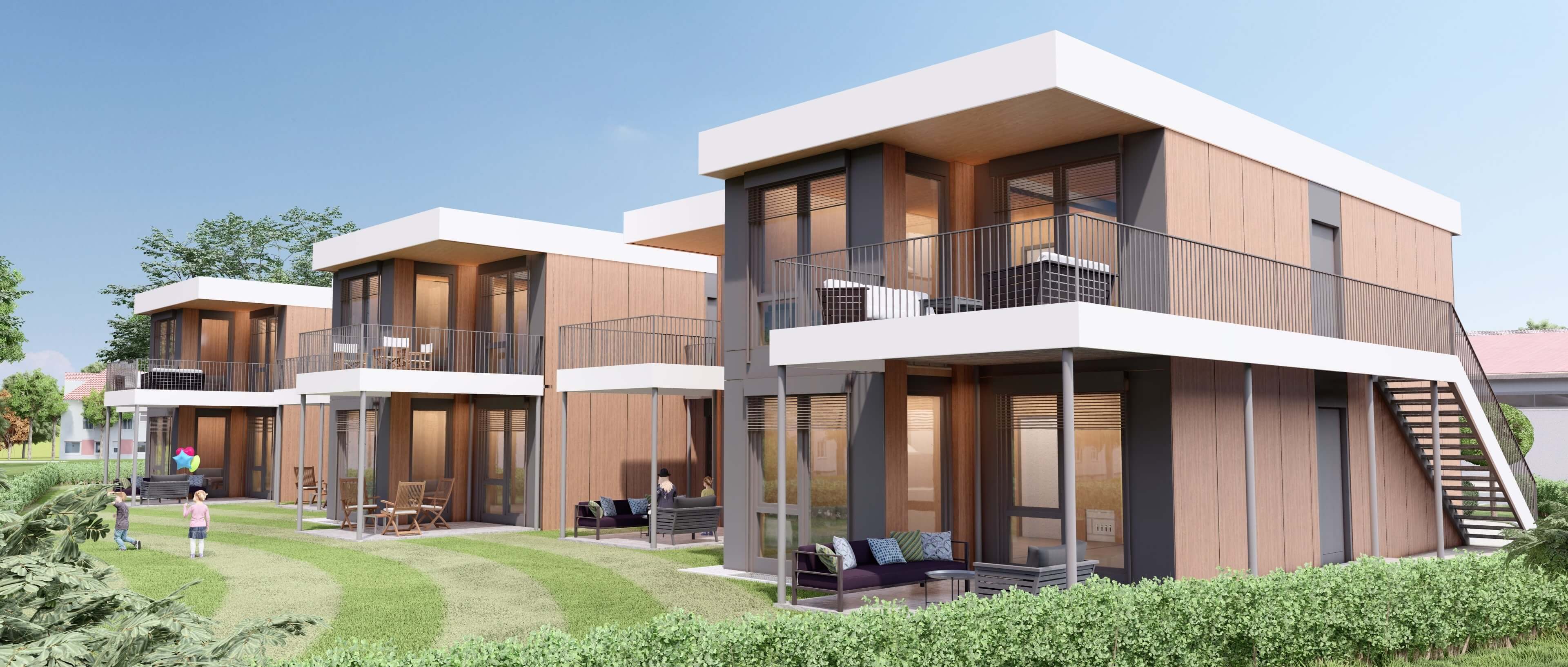 Nach der Aufstellung werden die Module durch einen Vollwärmeschutz komplettiert, der die thermische Hülle bildet. Energieautarke Ausbaustufen mit Photovoltaik auf dem Dach, Strombeheizung und Stromspeicher sind möglich. Damit sind die Weichen in Richtung Zukunft gestellt.