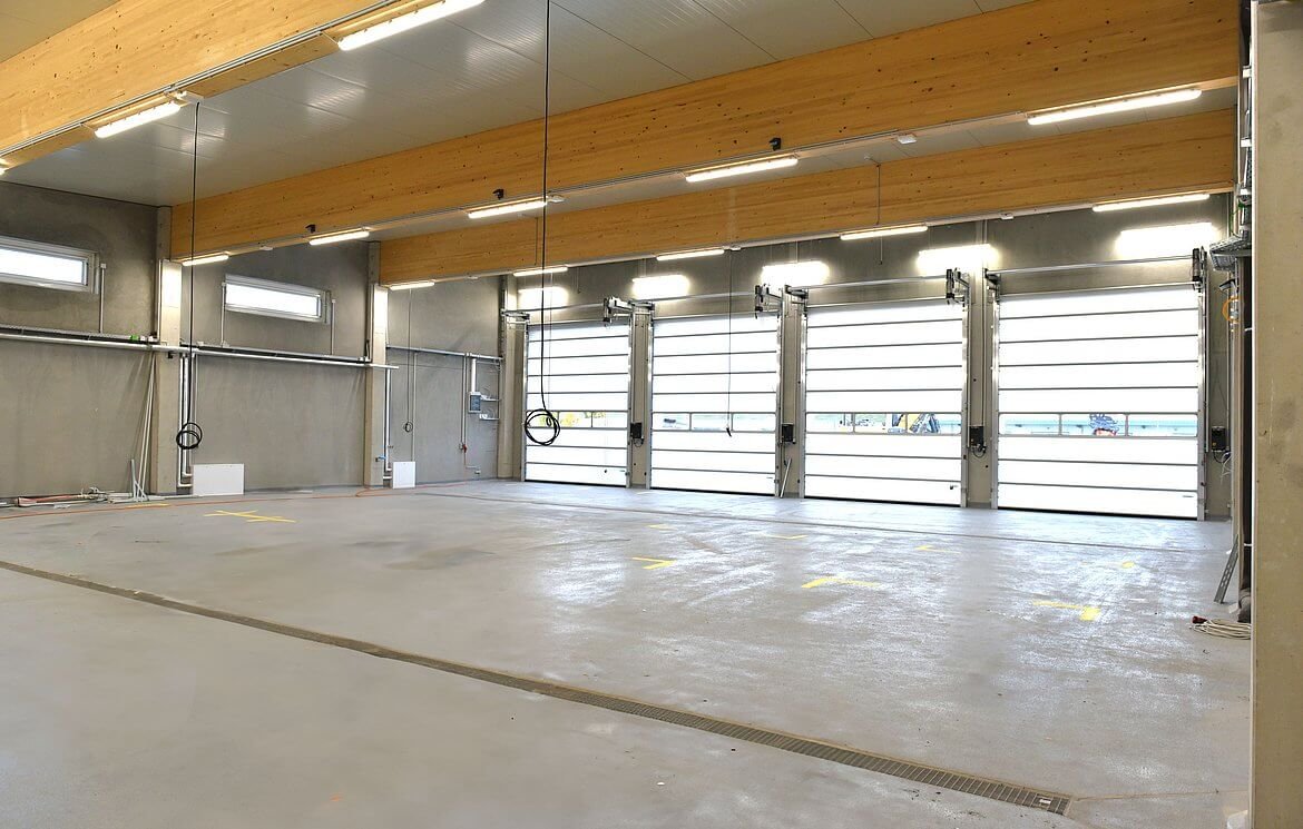 So sind ansprechende Büro- und Sozialräume, die in unserer modularen Hybridbauweise realisiert werden, für uns genauso umsetzbar wie entsprechend große und robuste Fahrzeug-, Geräte- und Lagerhallen aus Betonfertigteilen.