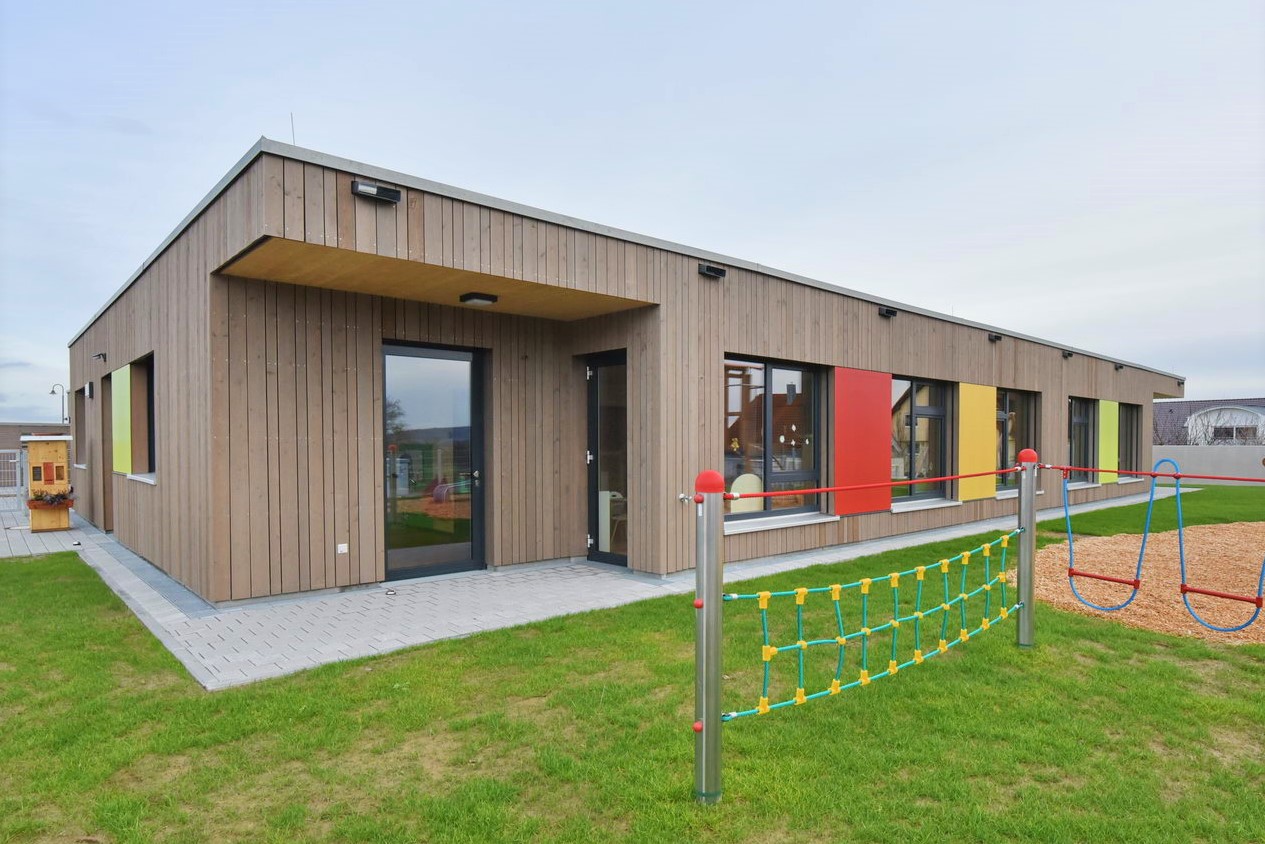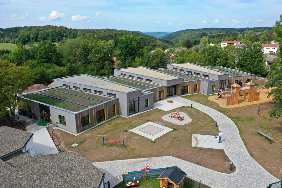 Unsere Modulbauweise verkürzt die Planungszeit, bietet Kostensicherheit und schafft für die neue Generation mit natürlichem Massivholz ein gesundes Raumklima, in dem es sich super spielen, lernen und Kind sein lässt.