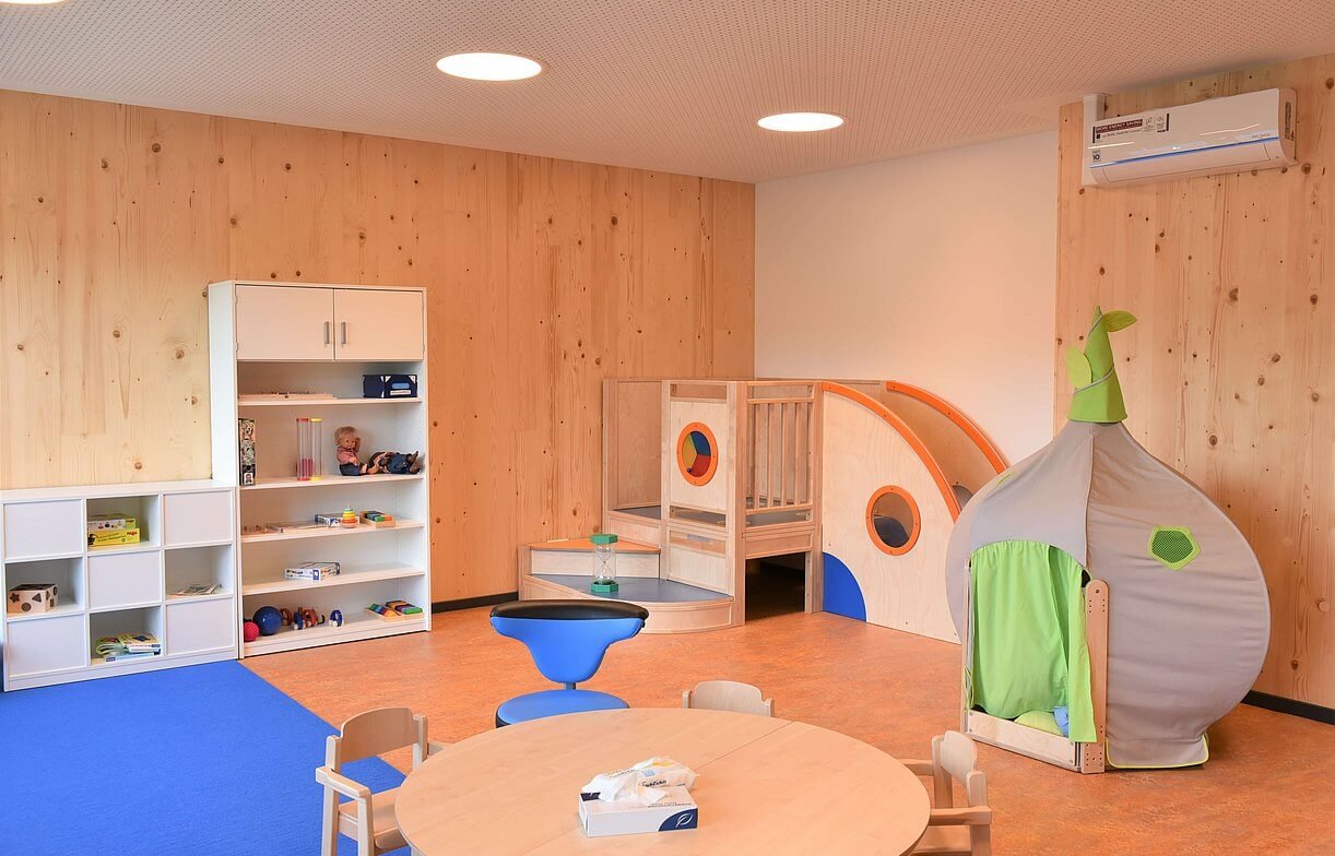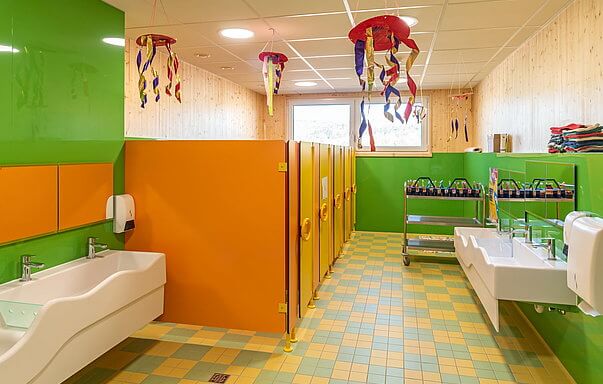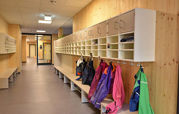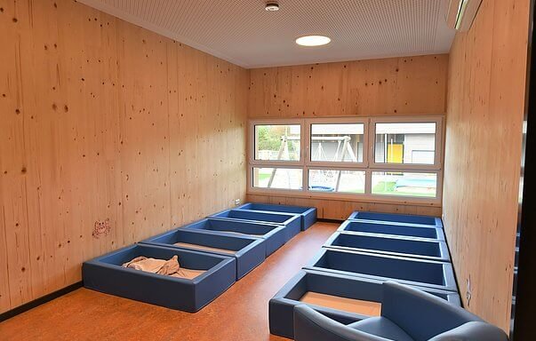 Im Kindergarten Nahweg in Neckarwestheim stehen den Kindern neben 4 Gruppenräumen mit Zugängen zum Außenbereich auch zwei separate Schlafräume, ein Atelier sowie je ein großzügiger Bewegungs- und Essensraum zur Verfügung. Natürlich sind entsprechende Sanitär- und Lagerräume sowie Personalbereiche ebenfalls ausreichend vorhanden.