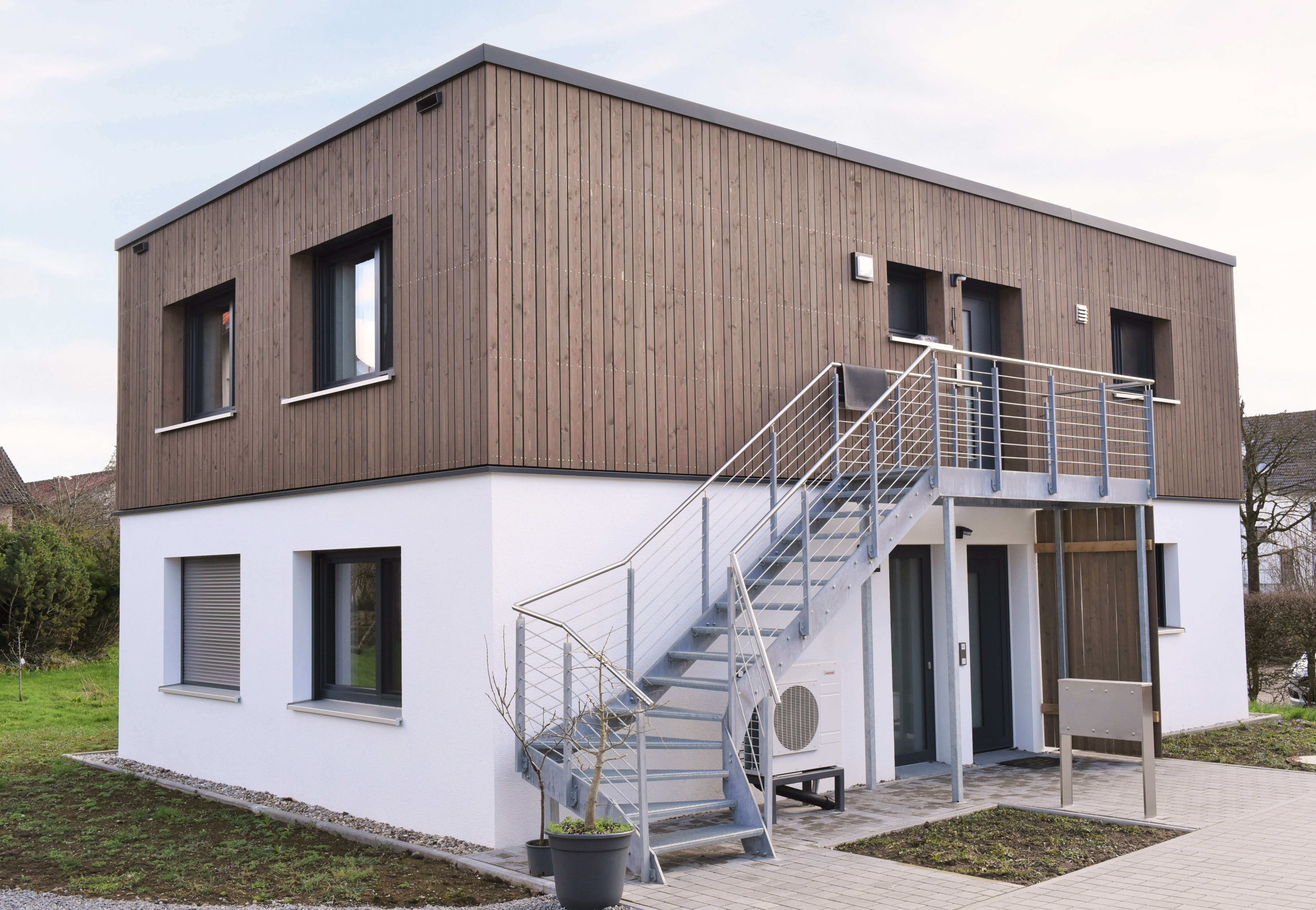 Nach der Aufstellung werden die Module durch einen Vollwärmeschutz komplettiert, der die thermische Hülle bildet. Energieautarke Ausbaustufen mit Photovoltaik auf dem Dach, Strombeheizung und Stromspeicher sind möglich. Damit sind die Weichen in Richtung Zukunft gestellt.