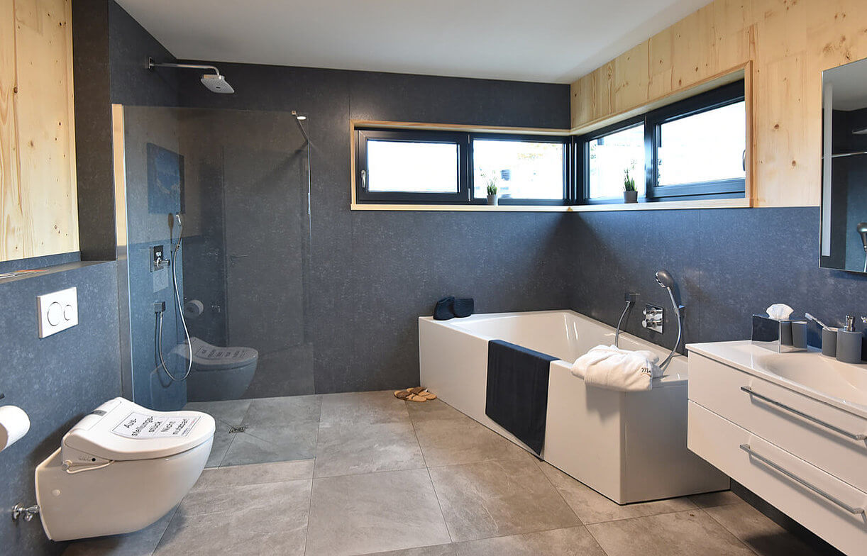 Unsere Wohnmodule vereinen die Vorteile zweier Baustoffe: Beton als Trägerplatte und Massivholz für Wände und Decken. Fußbodenheizung und Installationskomponenten sind bereits integriert.