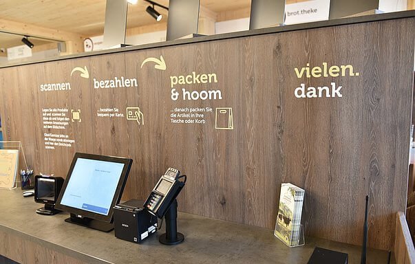 • Ausgewählte Waren werden selbstständig mit dem Handscanner erfasst (ohne Personal)
